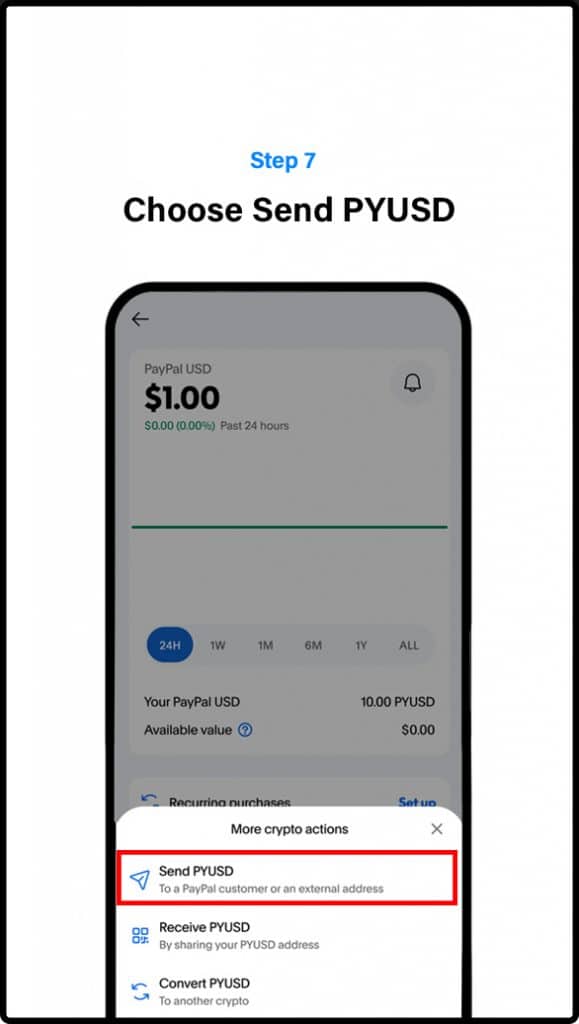 Choose “Send PYUSD” (To a PayPal customer or an external address).